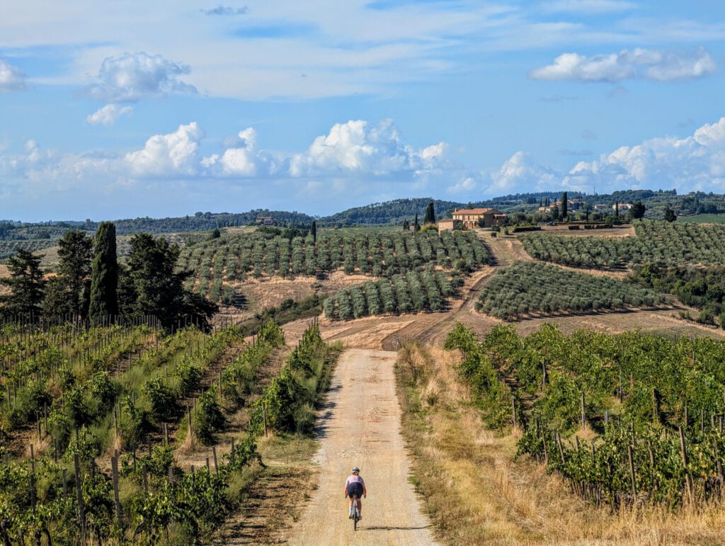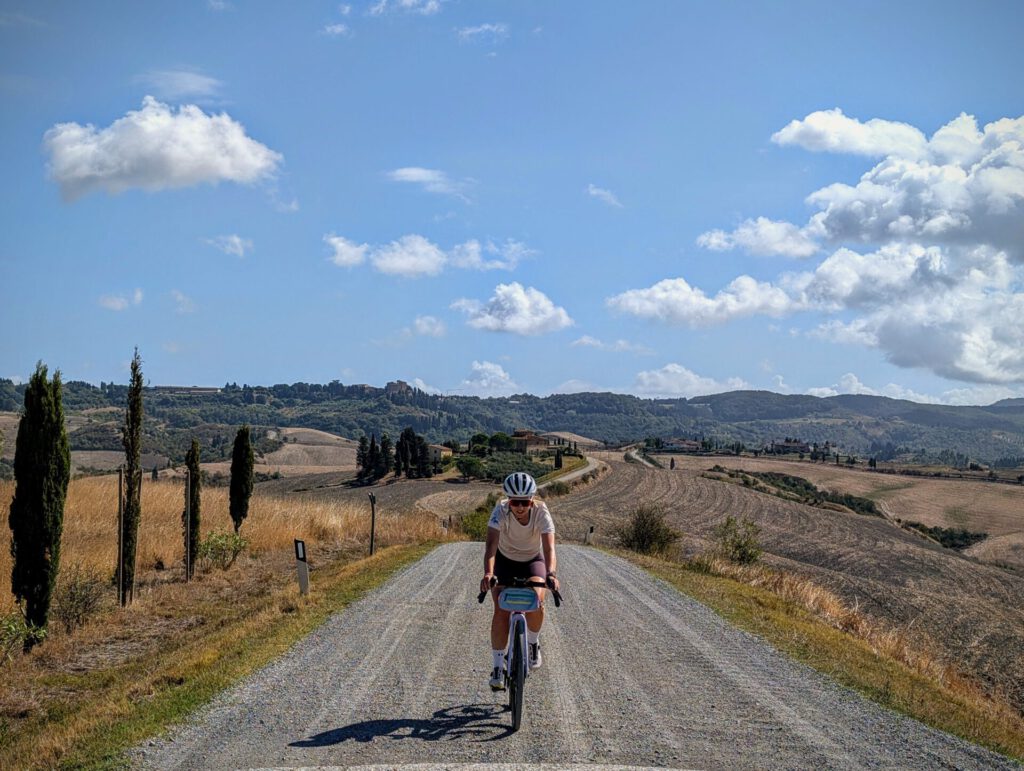 Just south of Montaione, at Castelfalfi, Thomas Bogaard pitched his proverbial tent. Castelfafi is a lot closer to the beautiful roads of the ‘Strade Bianche‘. Siena is the starting point for this and Thomas rode several rounds with his girlfriend Roos around the strade and around Montaione. You can find all the routes in a komoot collection at the bottom of this article. In any case, you will find a nice photo collection here!