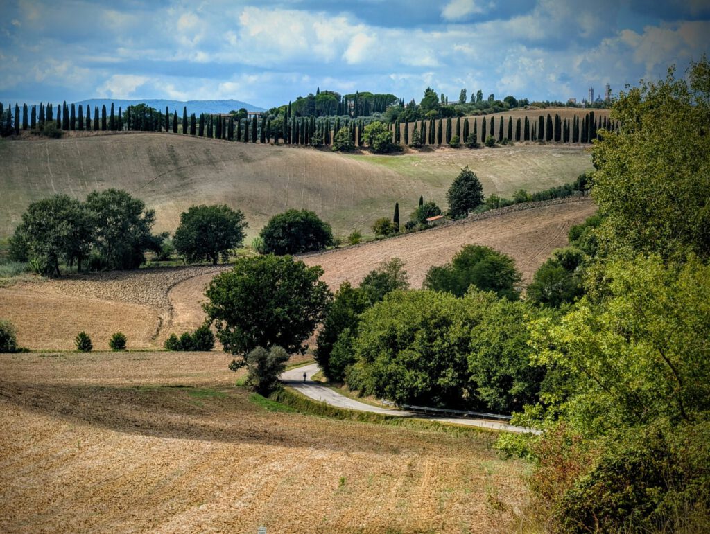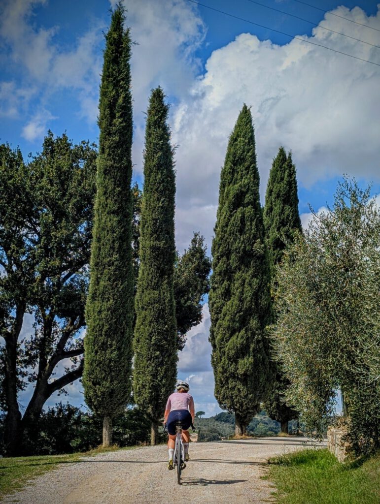 Leaving the triangle literally to the left, you quickly turn into the territory of ‘Terre di Pisa‘ on. Explorer Andrea has been a guest here before. If one image says it all, let's do two to complete it. Here you will find winding roads, cypresses, raked gravel and signposted routes. The routes are wonderful to ride both on a hot summer day, and a beautiful spring or autumn day in Tuscany. You will come across them often, so you have a wide range of options.