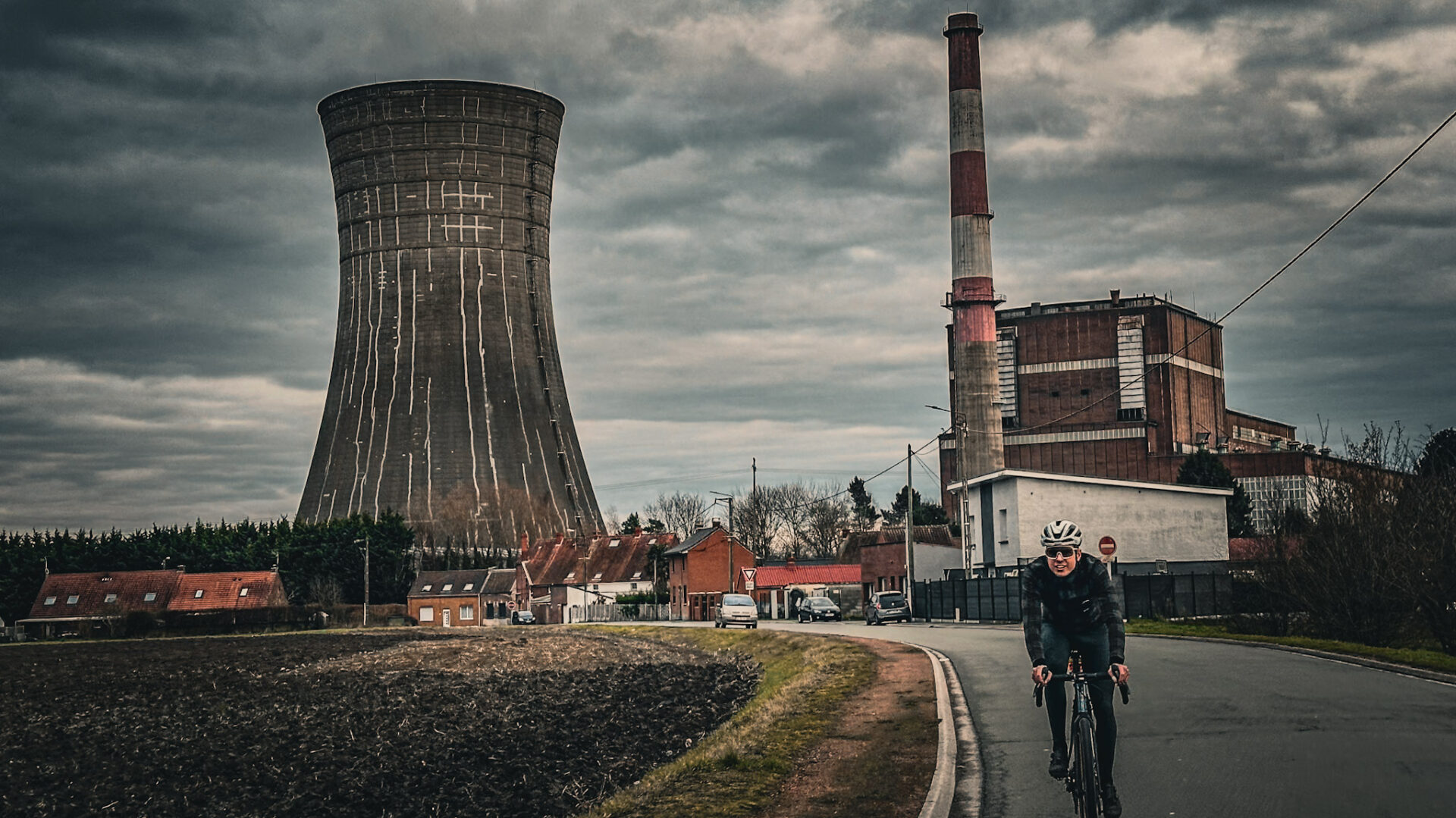 We vervolgen onze weg en de zon komt ietsje door de wolken, echt het perfecte weer voor een dagje Roubaix. Hoge sluierbewolking met dikke, donkergrijze wolken die lager hangen. Het past perfect bij de desolate sfeer van deze streek. Alles voelt episch, maar ook heel leeg en verlaten met een goede schep nostalgie. Je snapt waarom ze dit de hel van het noorden noemen. Ik neem het allemaal in mij op.