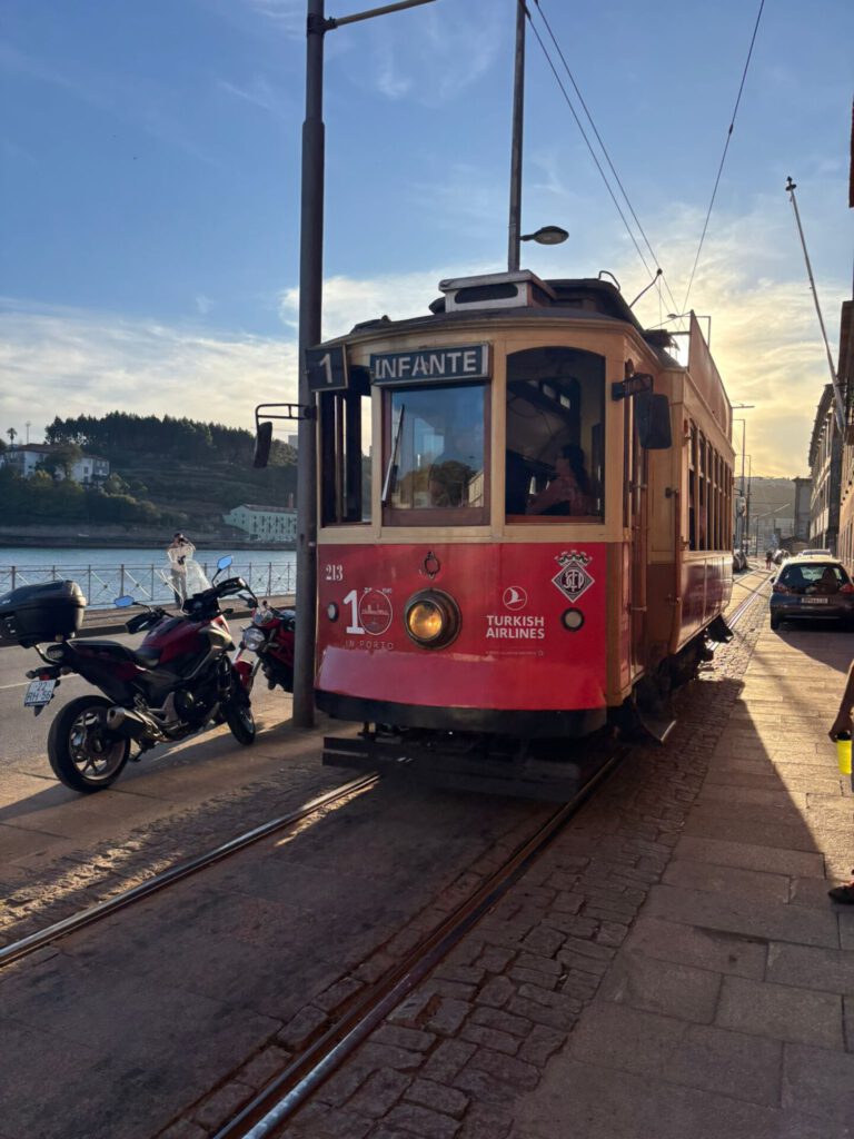 De reis begint in Porto, onder de bogen van de ijzeren Ponte Luís I, waar de Douro glinstert in de ochtendzon. We rijden door smalle straten vol tegels, dalen af richting de rivier en voelen het trillen van de stadse kasseienwegen in ons stuur: ‘They call this a Portugese massage!’ Ruben vertelt dat de portwijn die hier wordt verkocht, niet uit de stad zelf komt: de druiven groeien in de Douro-vallei, de wijn rijpt aan de overkant van de rivier – in Gaia. En de boogbrug waar we overheen rijden? Daarmee zou Porto ooit zijn koning hebben geëerd, maar toen Dom Luís niet kwam opdagen bij de opening, besloten de inwoners het ‘Dom’ uit de naam te schrappen. “Typisch Porto,” grijnst Ruben. “Trots, direct en een tikje eigenwijs.”