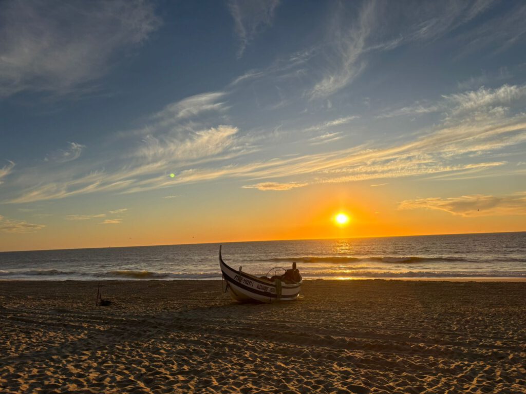 We eindigen in Praia de Mira, waar de zee niet alleen wordt bewonderd maar ook getemd. Ruben vertelt over Arte Xávega, de traditionele visserij waarbij mannen vroeger roeiden en nu tractors het strand op sturen om netten binnen te halen. “De vis werd meteen vanuit de boten verkocht,” zegt hij, “recht van de zee naar de pan.” Een ritueel dat ruikt naar zout, benzine en geschiedenis.