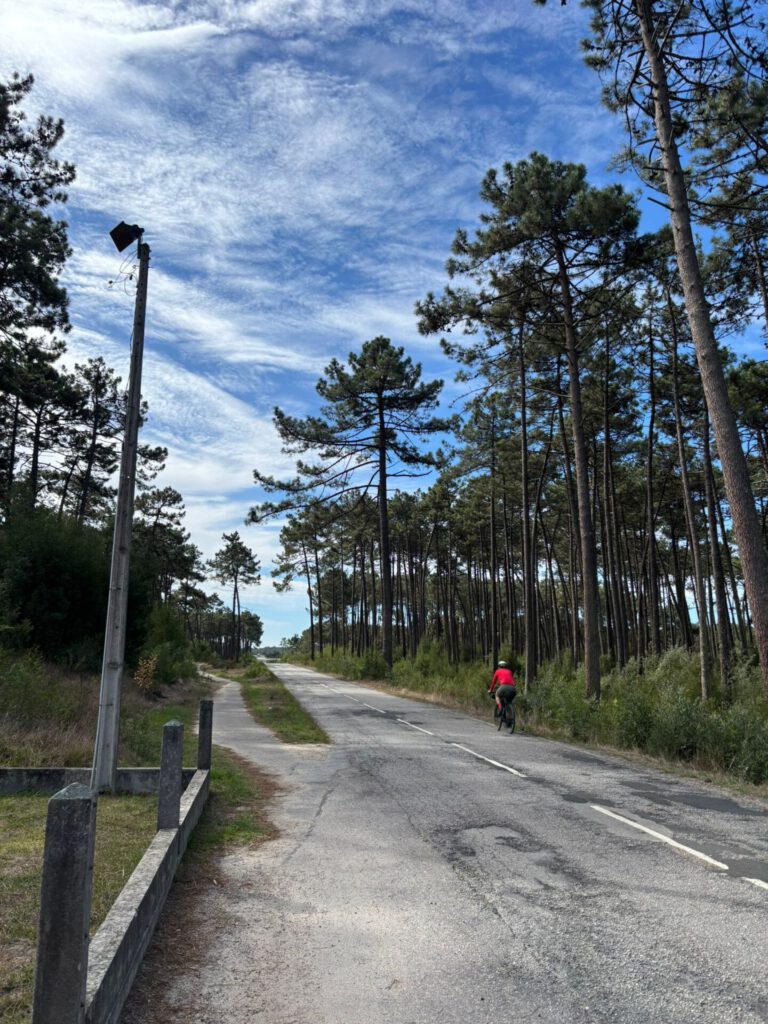 De tweede dag brengt ons verder naar het zuiden, langs een kust die tegelijk wild en georganiseerd voelt. De wind is stevig, de lucht vol hars. We rijden door de dennenbossen die ooit door mensen zijn aangeplant om de duinen te beschermen en het binnenland te behoeden voor verstuiving. “Zonder deze bomen,” zegt Ruben, “zou de zee elk jaar een stukje land winnen.”