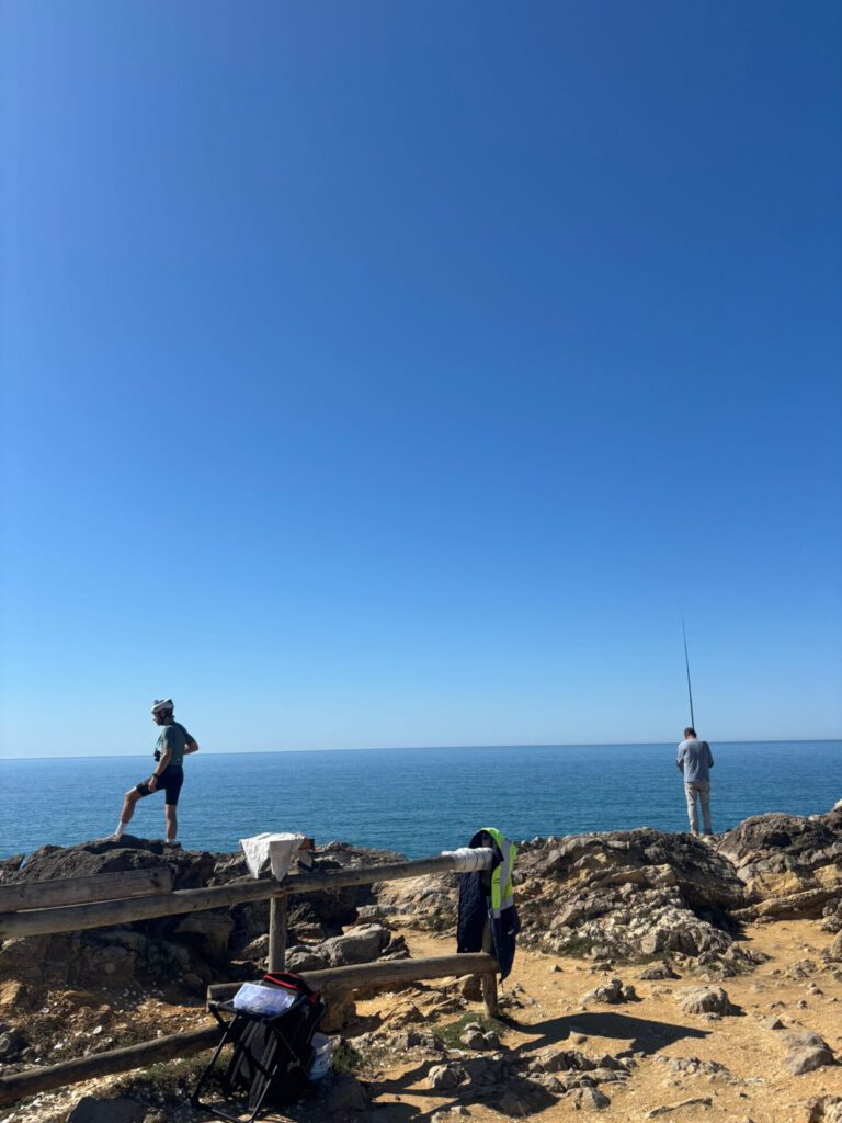 In Figueira da Foz wijst hij op de rij vuurtorens langs de kust en de lange pieren die de riviermonding openhouden. “We onderhandelen hier met de zee,” zegt Ruben. “Nooit gewonnen, nooit verloren – maar wel blijven varen.” Daarna volgen rustige kilometers door kleine dorpen tot de klimmen naar Nazaré beginnen.