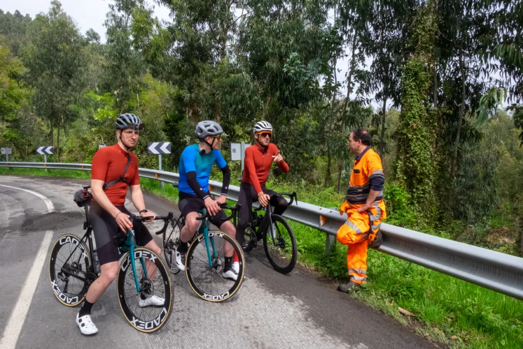 Het verschil tussen de prof en de amateur wordt gelijk duidelijk. Wij ‘koude’ Hollanders staan in korte broek, met mouwstukken en een body klaar om te gaan fietsen. Haimar heeft lange mouwen, een broek met kniestukken, extra mouwstukken, lang ondershirt en weet ik veel wat nog meer aan. ‘Es muy frio, no?’ Wij vinden het wel meevallen. We drinken koffie en terwijl we de fietsen klaar maken, klinkt er een schreeuw vanaf de straat. ‘HAIMAR!!!’ Een vrouw van middelbare leeftijd hangt uit het raam van haar Seat. Ze roept wat onverstaanbare termen, waar ik alleen de voornaam van onze reisgenoot in kan ontwaren. Hij glimlacht en zwaait. ‘She’s from my hometown’. Het tafereel is blijkbaar normaal, ik vind het bijzonder.