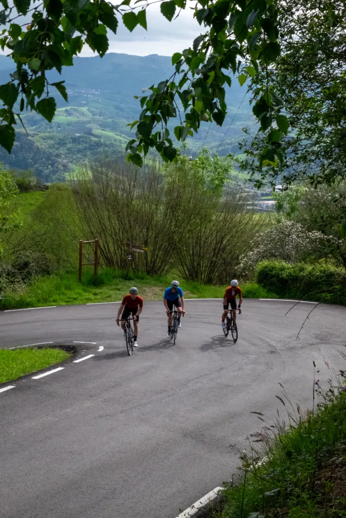 De derde etappe trekt vanuit het slaperige stadje Amorebieta-Etxano met een soort hoek richting de ruige kustlijn van het Baskenland. Op de weg daarnaartoe moeten we twee klimmetjes verwerken. Voor de amateurfietser zoals ik een uitdaging. Volgens Haimar is het enkel ‘om de vlucht van de dag’ weg te laten komen. De Alto de Trabakua is bijna vijf kilometer lang aan 5,4 procent. De Milloi is wat korter met nog geen tweeënhalve kilometer aan ongeveer vijf procent. Als we het slaapstadje achter ons laten, rollen we eerst langs andere plaatsen zoals Durango. en de Trabakua bedwingen, merk ik dat ik nog niet de juiste benen heb voor de dag. Haimar en mijn andere reisgenoten peddelen vrolijk weg. Ik vind het nog maar niks. Haimar laat zich wat terugzakken en wijst in de verte: ‘Daar ligt de fabriek van Orbea‘. De Baskische fietscultuur ligt hier letterlijk voor het oprapen.